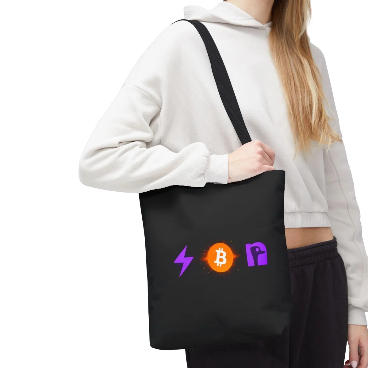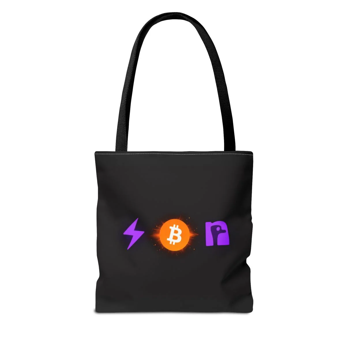 Bitcoin Lightning Network Icons tote bag | Crypto logo art, black all-over print