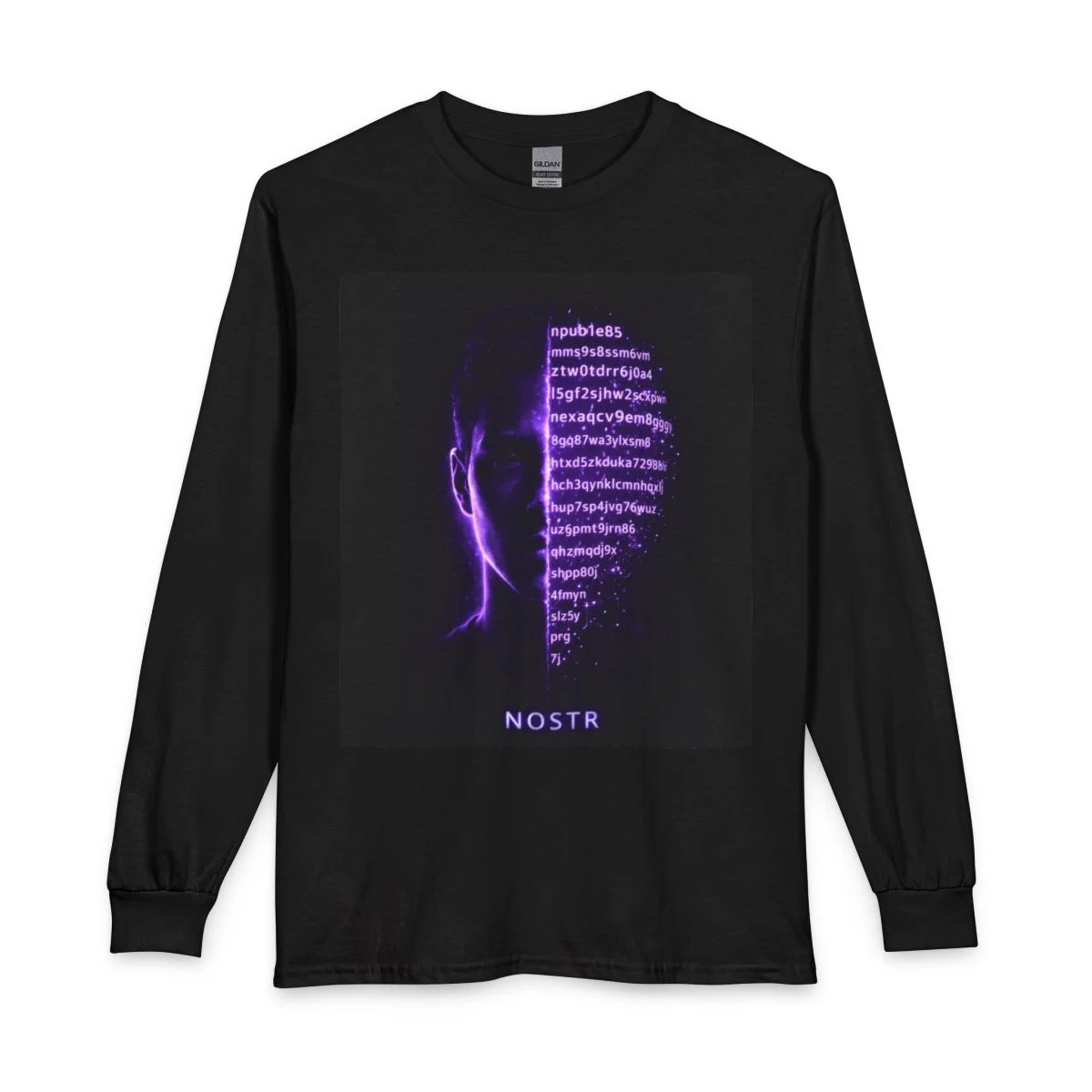 NOSTR Neon Profile Art Long Sleeve Shirt | Cyberpunk Code Portrait