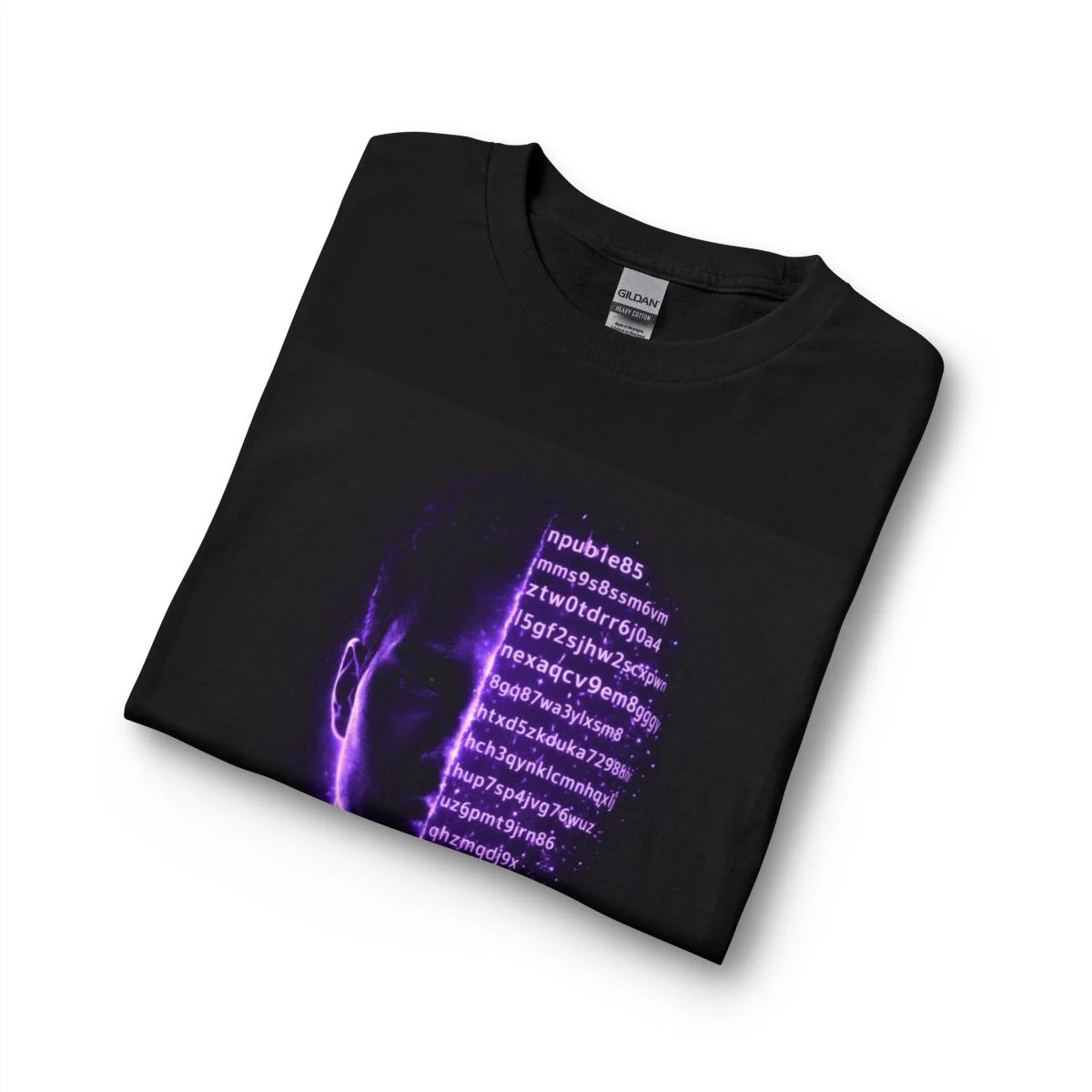 A dark, moody long sleeve that feels like nighttime code and quiet streets. The soft black cotton wears in gently, letting the violet graphic — a half-hidden face dissolving into cascading text — take center stage. Slip it on when you want to move through the city or a late studio session with somet...